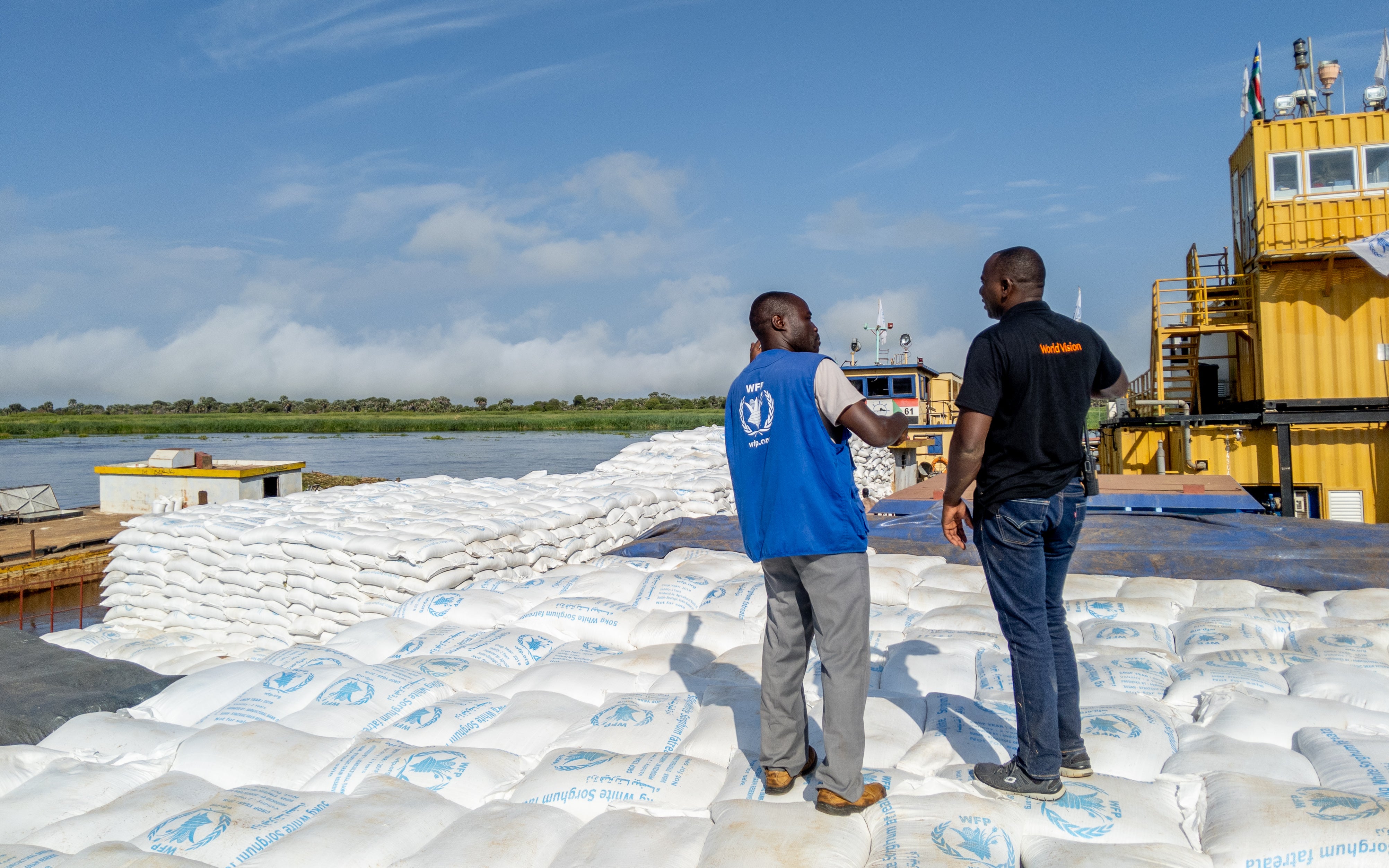 Sudán del Sur, 2019. World Vision y el PMA trabajan juntos para distribuir 245 toneladas de alimentos de emergencia a los supervivientes de las inundaciones.