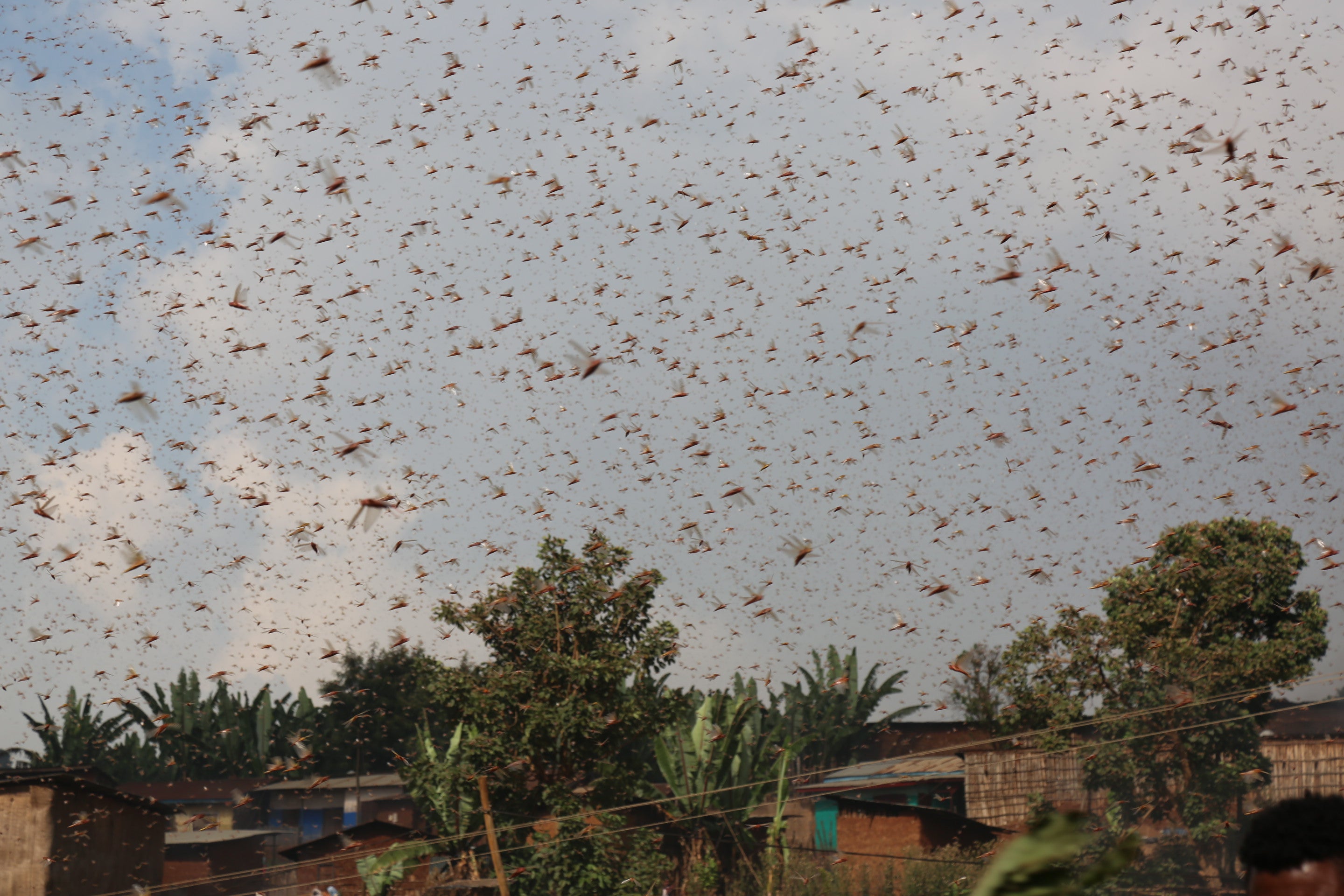 Según el informe de la FAO (enero de 2020), Etiopía está experimentando la peor invasión de langostas del desierto en 50 años. La plaga de langostas ha afectado a 125 distritos, de los cuales 73 tienen lugares de cría, añade el informe. La invasión ha destruido los cultivos, los medios de subsistencia, la cubierta forestal y los negocios agrícolas, y está contribuyendo a una grave inseguridad alimentaria en Etiopía y los países vecinos.